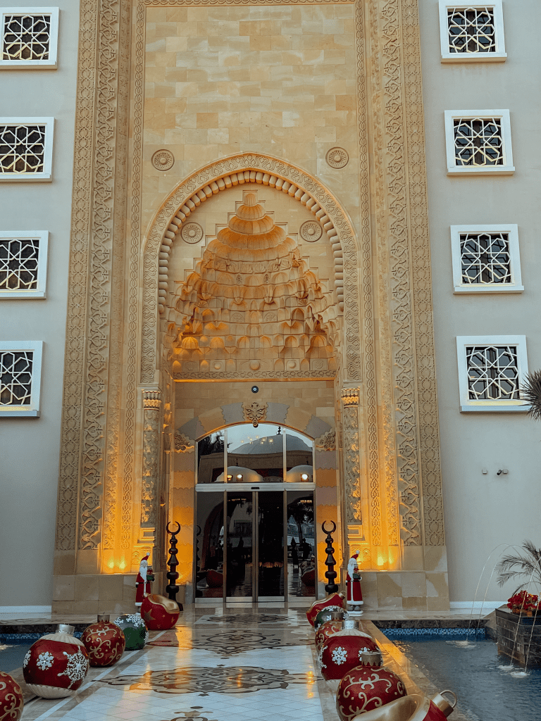 Jumeirah Zabeel Saray stands out as one of the most grandiose hotels with its ornately carved entrance and palatial façade. It makes you feel like you have just stepped into a palatial golden age of the Ottoman empire with the shimmering gold and white lobby complemented by the polished stone floor and marbled fountain. The hotel is absolutely stunning in person as it is in pictures. I wanted the “Arabian feel” and the hotel gave me that and even more.