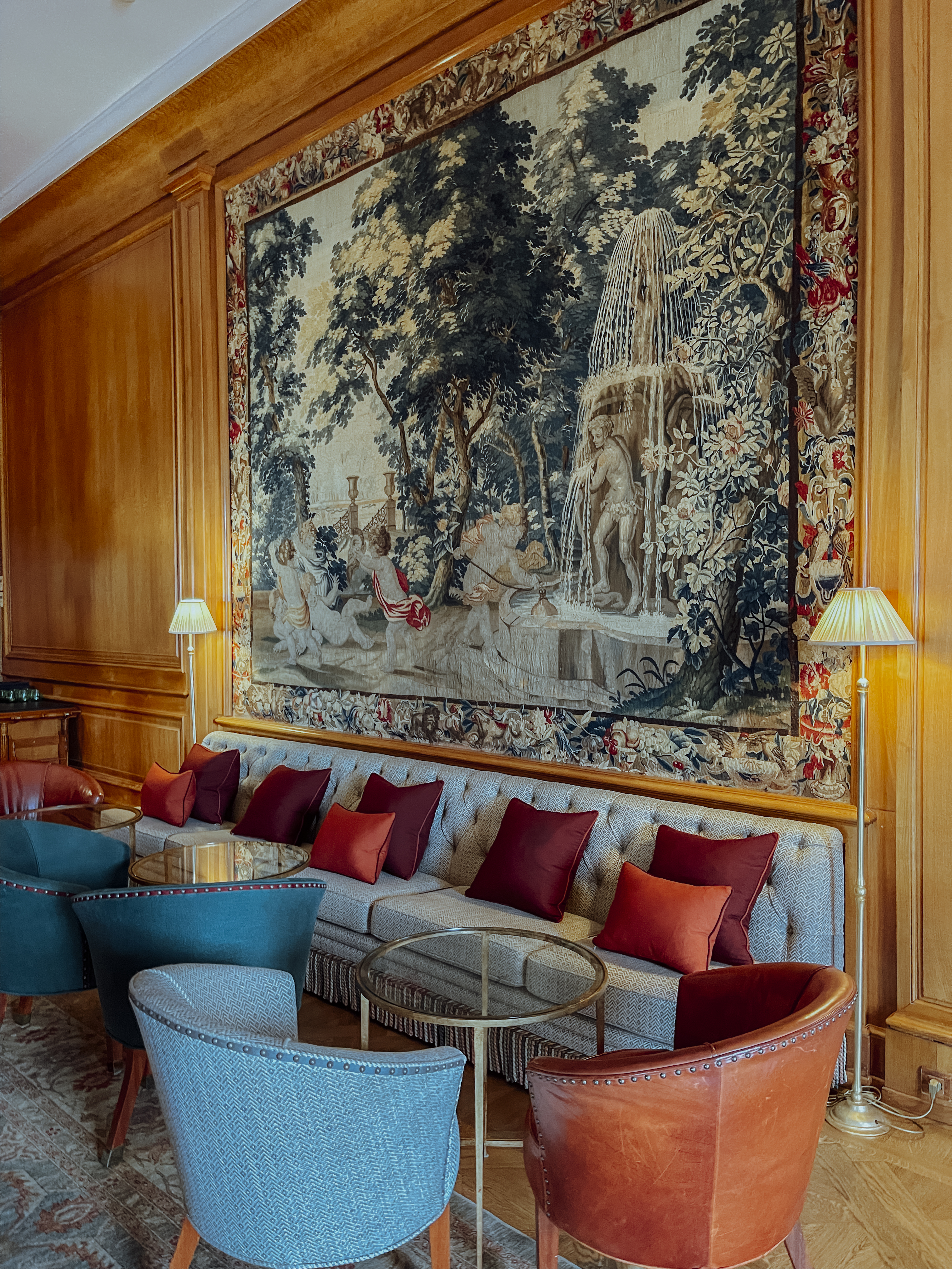 Upon arrival, we were greeted with the most luscious garden and the historical ruins of a 12th century castle guard at the gate entrance. We were then given a very warm welcome, whilst, luxuriating in the beautiful décor at the lobby – furnished with a regal splendour. What caught my eye was particularly the Aubusson 200-year-old tapestries in the bar area that hung majestically on the wall.